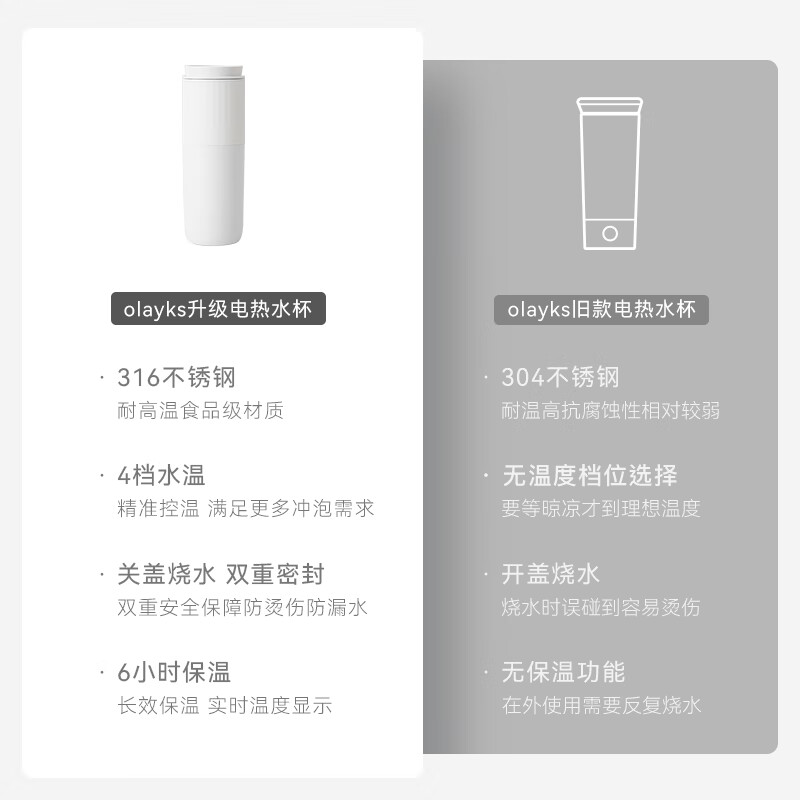 olayks立时 便携式烧水壶 电热水壶 恒温水壶 旅行出差烧水杯恒温电热水杯加热保温杯316电热杯 岩黑价格:119.00元!