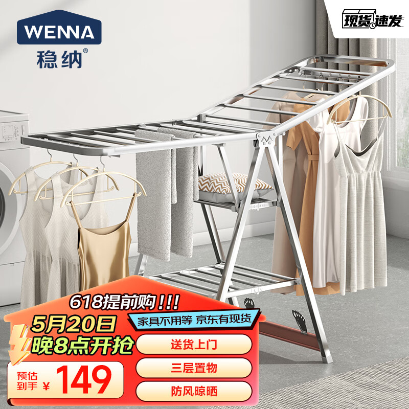 稳纳晾衣架衣架落地阳台晾衣杆折叠挂衣架室外晒被子架不锈钢衣架杆价格:169.00元!
