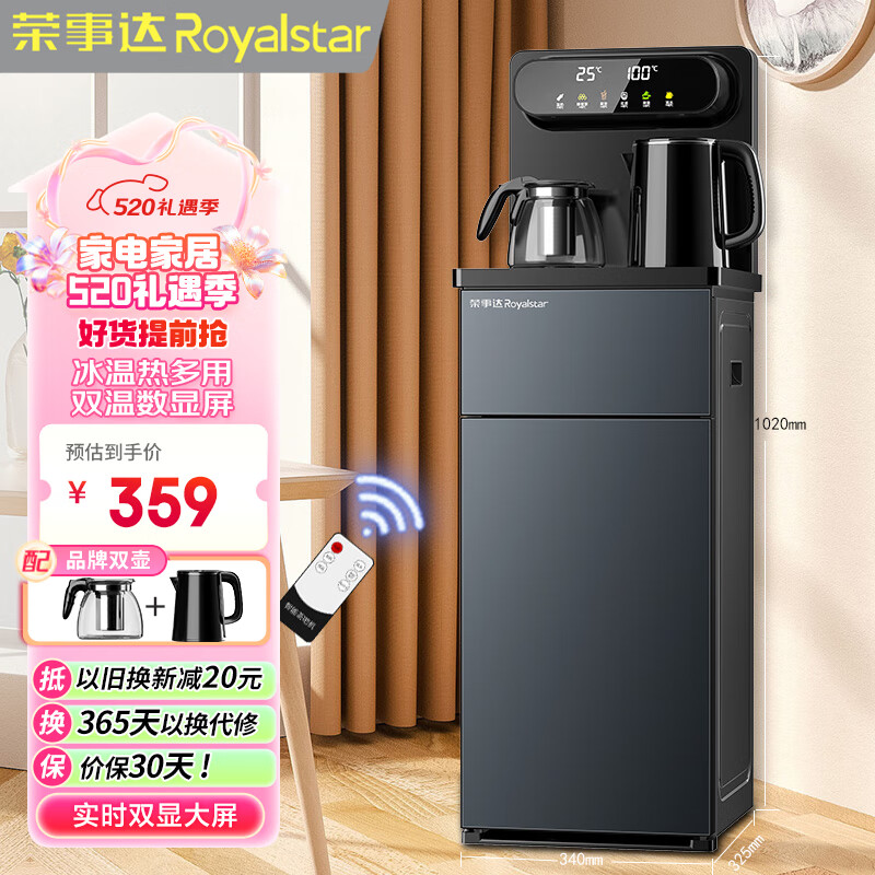 荣事达(Royalstar) 茶吧机家用智能遥控多功能下置水桶制冷饮水机双显大屏办公室立式饮水器冷热型CY816D价格:359.00元!