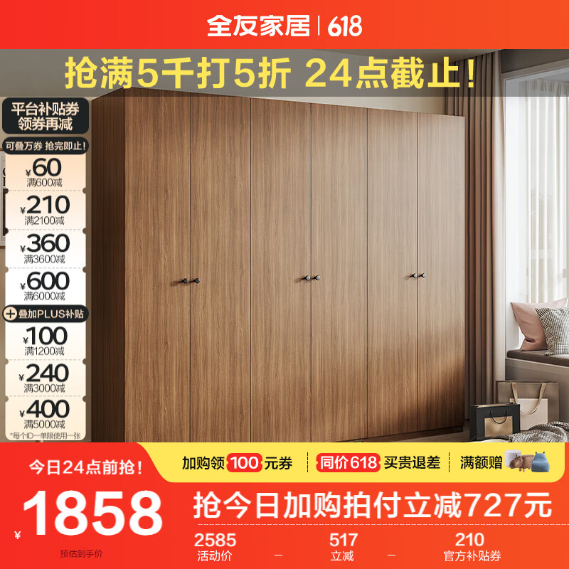 全友家居 二门四门衣柜简约风卧室衣物收纳多规格平开门家具DG10009价格:2585.00元!
