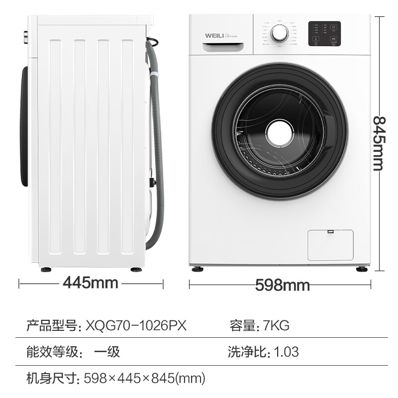 威力(WEILI)7公斤 滚筒洗衣机全自动 超薄机身一级能效 高温除菌筒自洁 15分钟快洗4档水温可调XQG70-1026PX价格:949.00元!