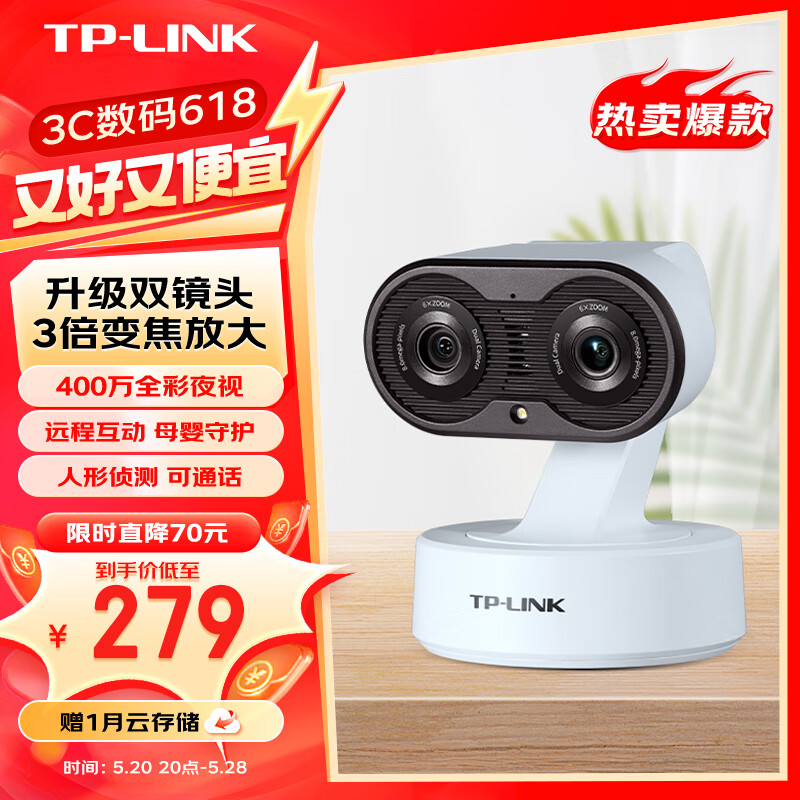 TP-link 400万双摄5G双频摄像头家用监控器360全景无线家庭室内tplink网络手机远程门口婴儿看护器IPC44GW价格:299.00元!