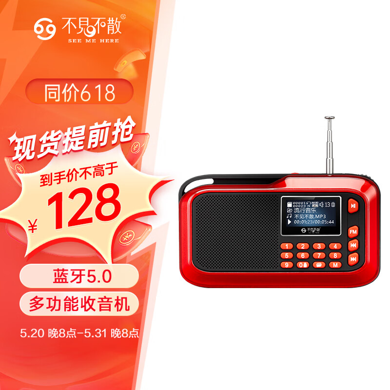 不见不散H1+老年人半导体收音机充电式u盘插卡戏曲音乐播放器便携式蓝牙小音箱小型迷你随身听音响蓝牙版红价格:138.00元!