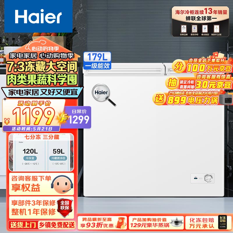 海尔(Haier)179升双箱双温商用家用冰柜 大冷冻小冷藏卧式冰柜家用小型冰箱冷柜FCD-179GHXD 以旧换新价格:1299.00元!