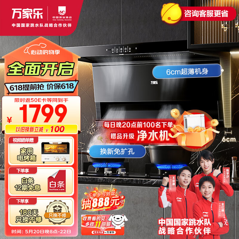 万家乐顶侧双吸油烟机 23立方抽油烟机烟灶套装自清洗换新免扩孔小尺寸不锈钢灶具套装TAK5+AY4G天然气价格:1999.00元!