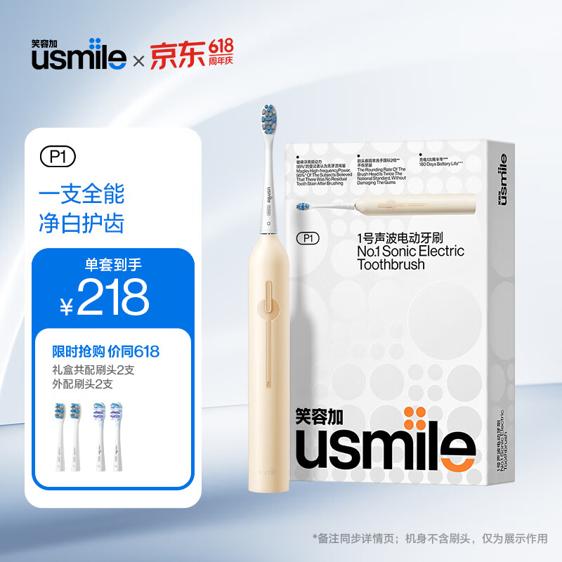 usmile 笑容加 电动牙刷 1号刷 奶油黄+缓震亮白刷头2支装价格:228.00元!