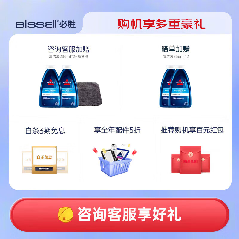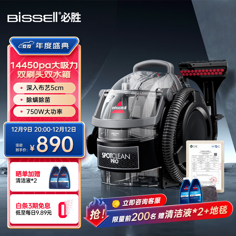 必胜(BISSELL)布艺沙发清洗机喷抽吸一体家用除螨洗地毯机地毯清洗机地毯沙发床垫窗帘汽车清洁神器 黑骑士1558Z价格:890.00元!