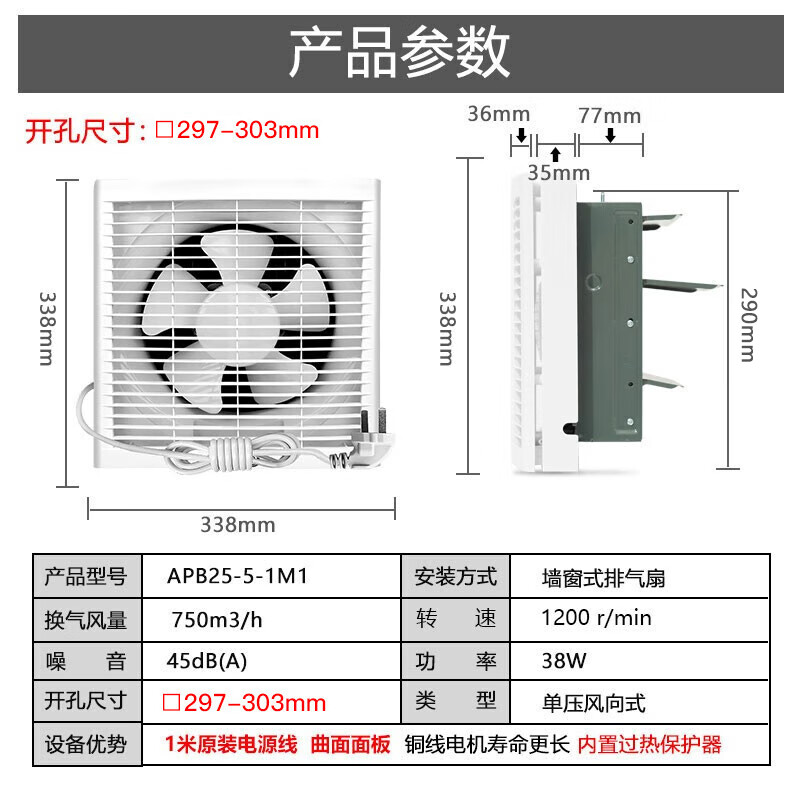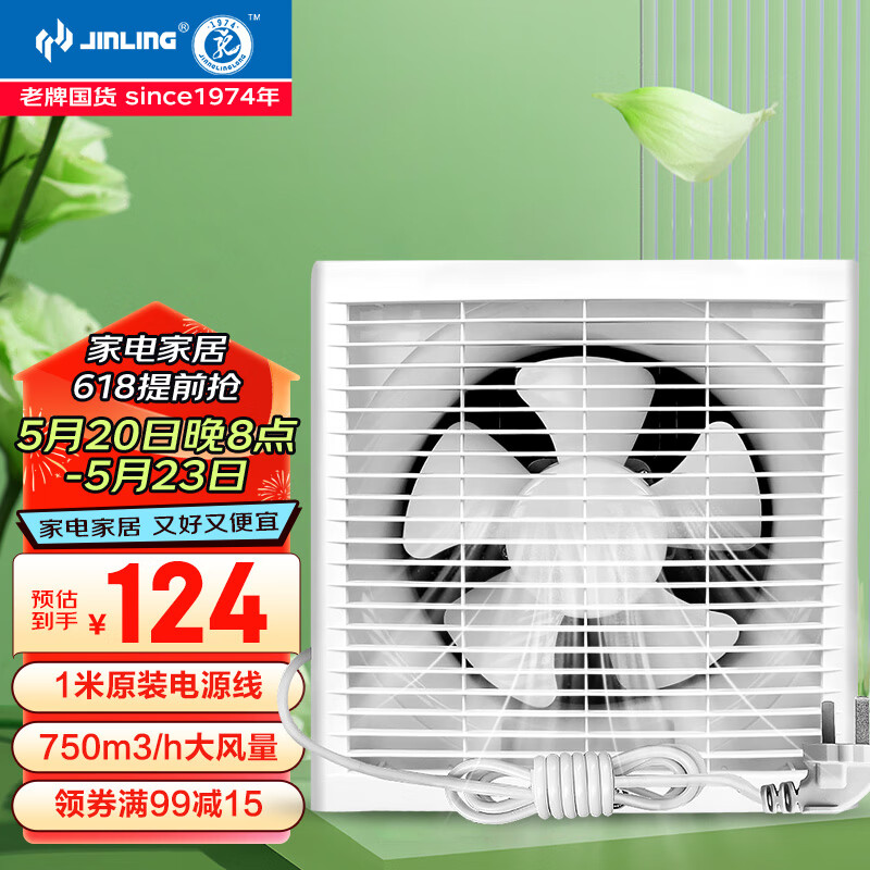 金羚(JINLING)排气扇厨房卫生间换气扇浴室排风扇抽风机墙窗式10寸APB25-5-1M1价格:139.00元!