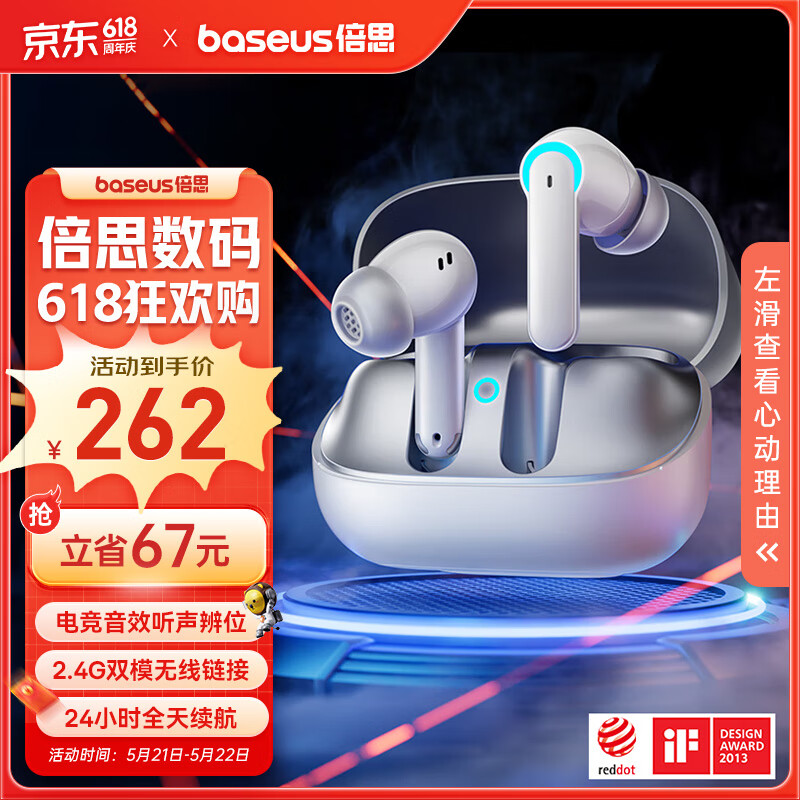 倍思 G10 真无线蓝牙耳机 25ms游戏低延迟2.4G双模 长续航通话降噪入耳 电脑电竞吃鸡 适用华为小米 白价格:329.00元!