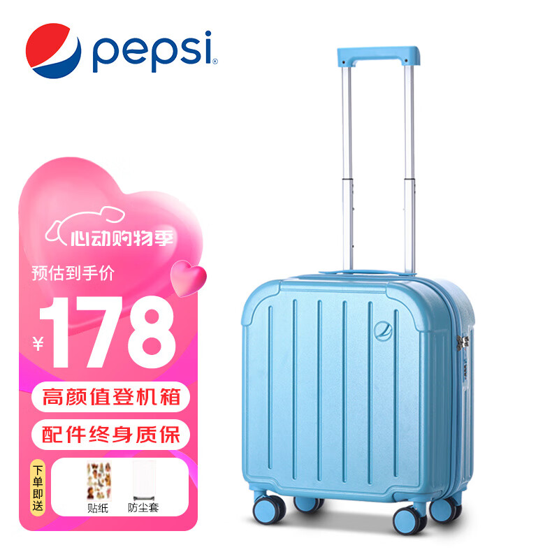 百事(PEPSI)行李箱女20英寸登机箱高颜值拉杆箱男万向轮小型迷你旅行密码箱价格:178.00元!