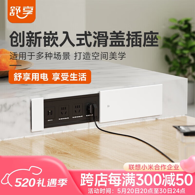 舒享嵌入式插座桌面插座嵌入式插排岛台桌面书桌餐桌隐藏插座滑盖嵌入式排插价格:188.00元!