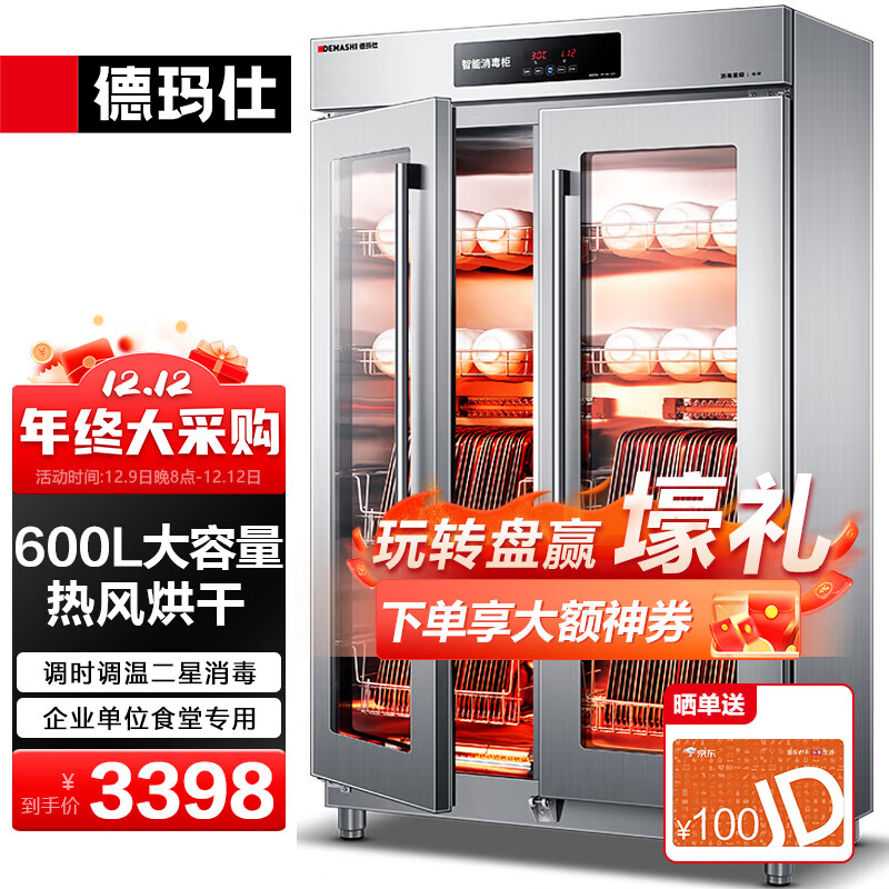 德玛仕(DEMASHI)商用消毒柜热风循环 立式高温双开门 单位食堂餐厅用可调温调时 不锈钢消毒碗柜XDR600-A1价格:3398.00元!