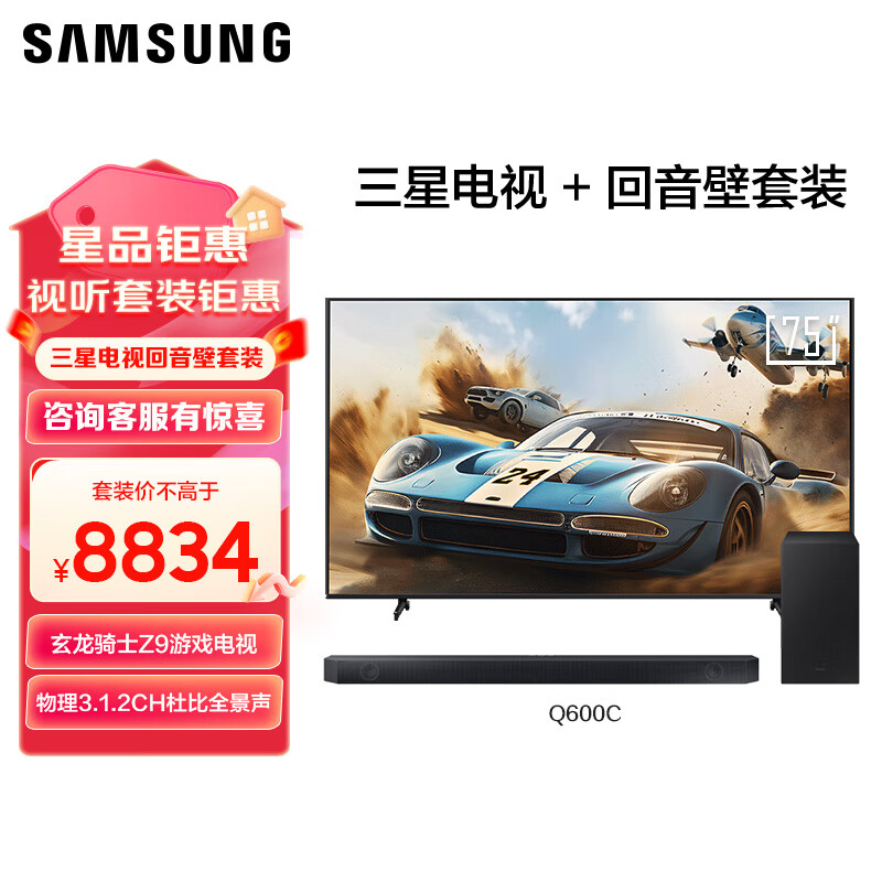 三星(SAMSUNG)玄龙骑士Z9 75英寸 3+64G 专业游戏电视 5.8ms 低延迟 UA75ZU9000JXXZ +HW-Q600C/XZ音箱套装价格:8834.00元!