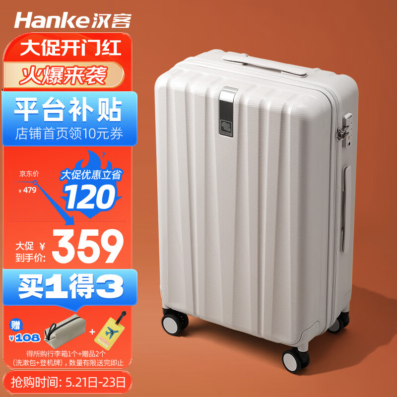汉客行李箱男拉杆箱女旅行箱50多升大容量22英寸象牙白密码箱再次升级价格:479.00元!