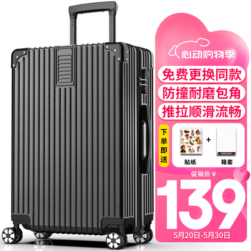 SOO行李箱男万向轮拉杆箱耐磨抗摔26英寸A330旅行箱密码箱女商务黑色价格:139.00元!