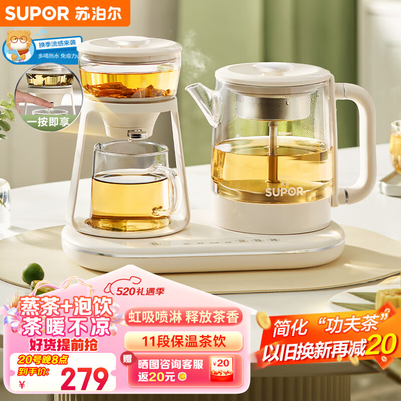 苏泊尔(SUPOR)煮茶器煮茶壶 蒸汽喷淋式蒸茶壶养生壶电水壶热水壶304不锈钢烧水壶茶具 SW-08C11【蒸茶+泡饮】价格:279.00元!