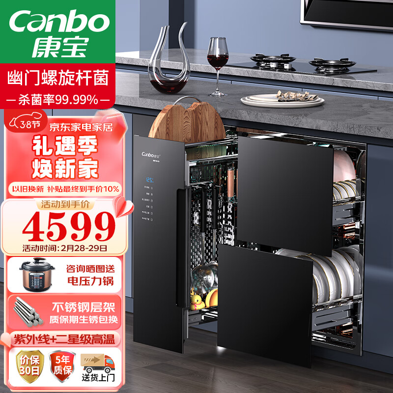 康宝(Canbo)304不锈钢 三层 智能 砧板 消毒柜 嵌入式 家用 厨房碗筷餐具母婴二星高温 消毒碗柜 XDZ110-Z1价格:4599.00元!