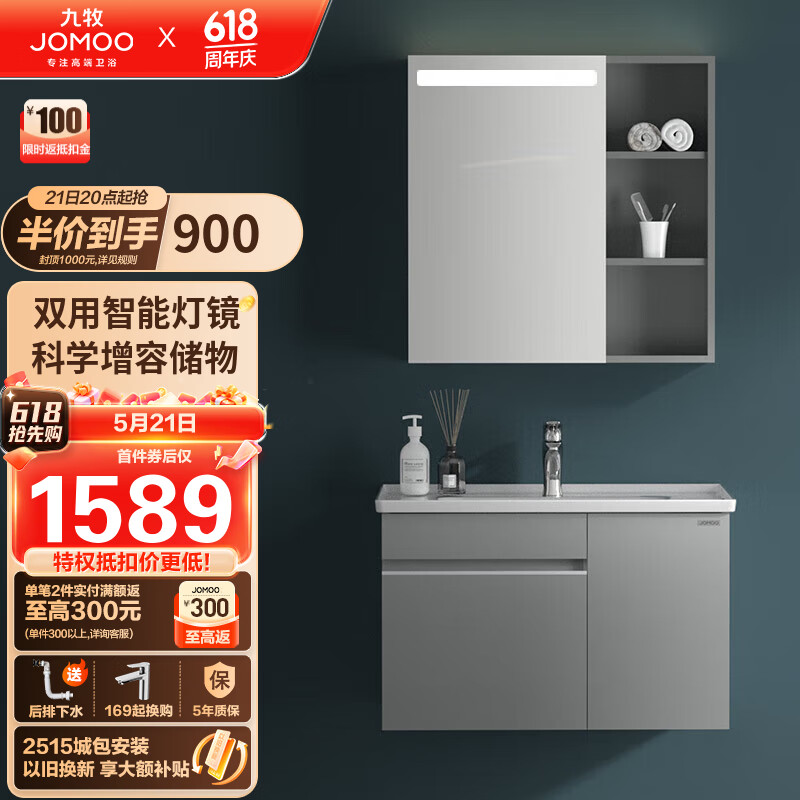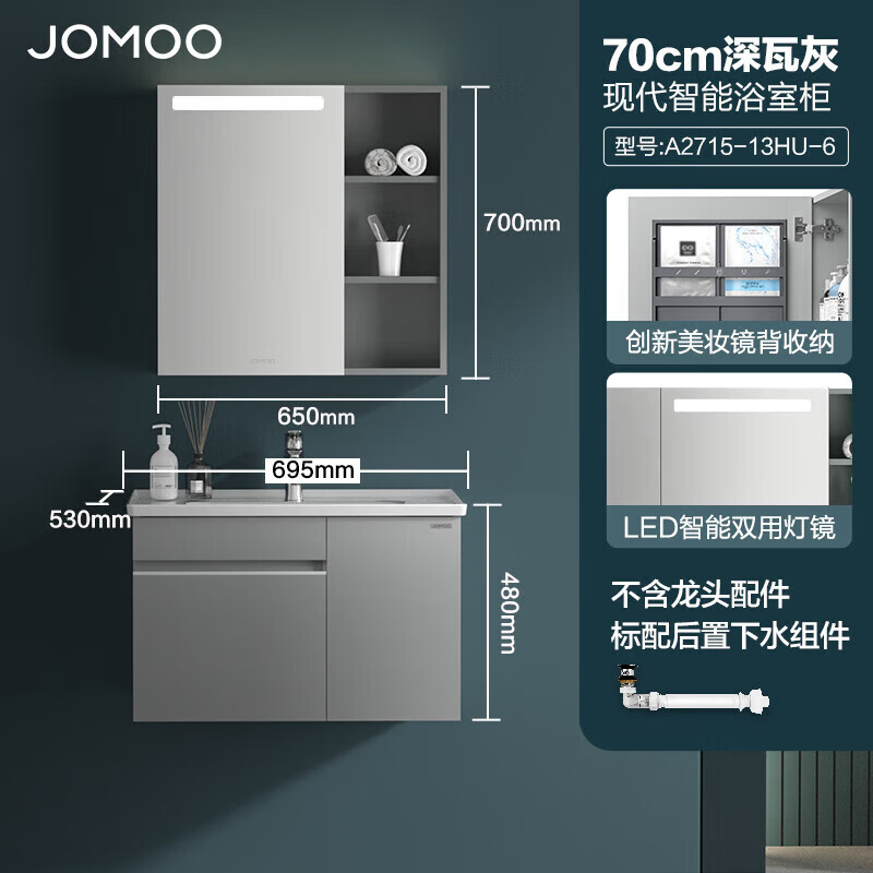 九牧(JOMOO)极简浴室柜陶瓷一体盆洗大收纳智能灯镜柜组合70cm A2715-13HU-6价格:2149.00元!