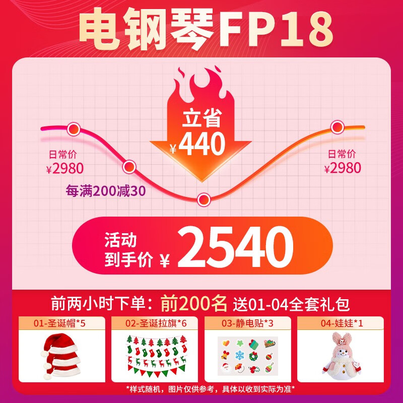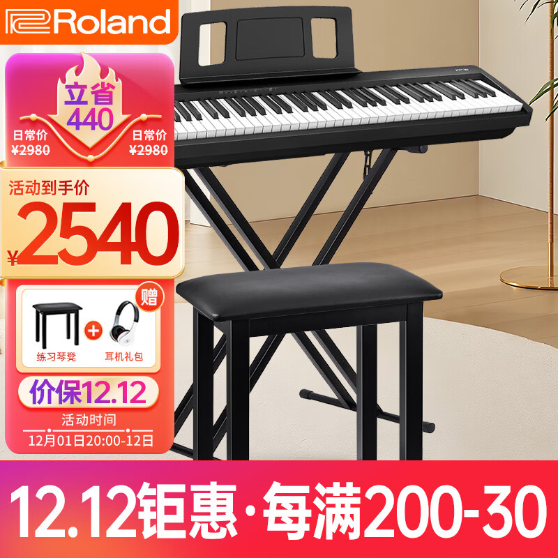 罗兰(Roland)考级智能初学88键重锤电钢琴FP18主机+便携X架+单踏板+套装礼包价格:2960.00元!