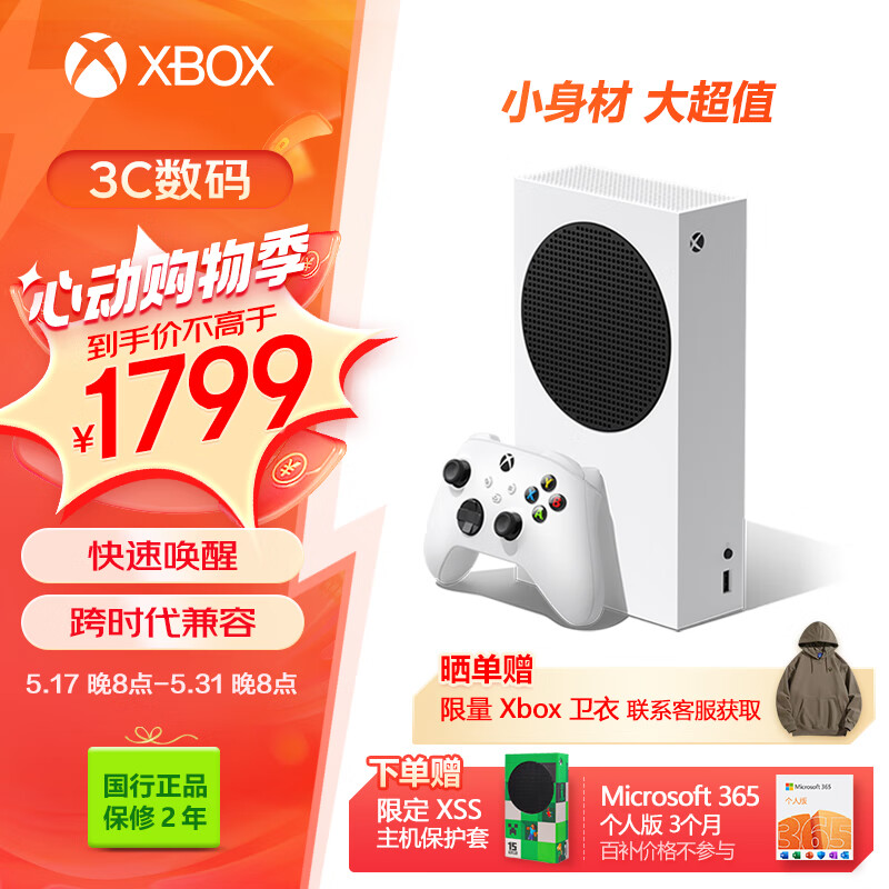 微软(Microsoft)Xbox Series S游戏机 丨XSS 国行xbox游戏主机 身材精巧性能强大价格:1789.00元!
