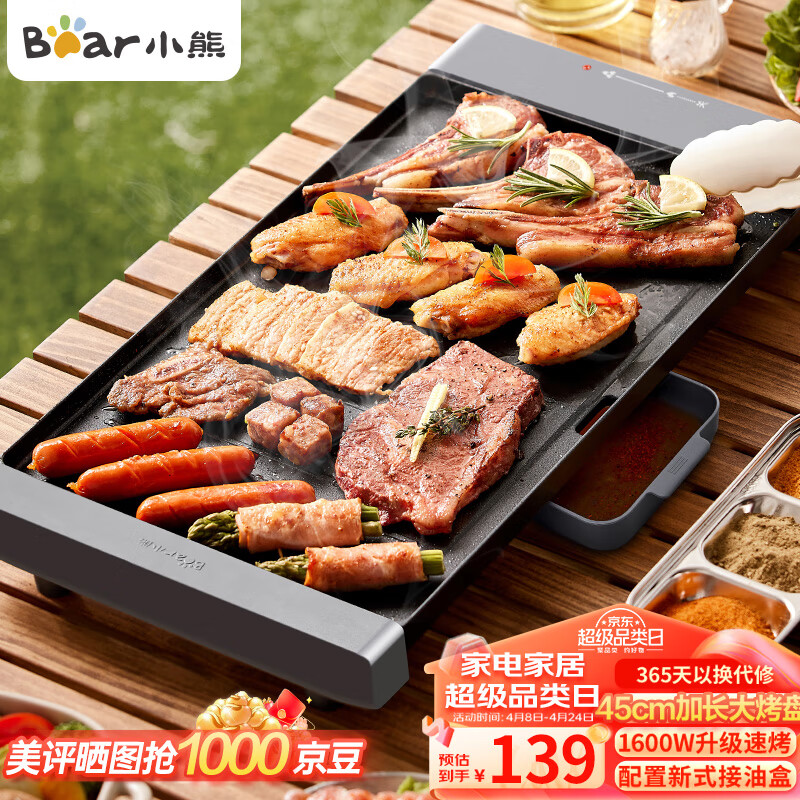 小熊(Bear)烤肉盘烤肉锅电烤盘烧烤家用多功能电烤炉大容量大功率速烤轻油少烟不粘烤肉机DKL-R15R6价格:139.00元!