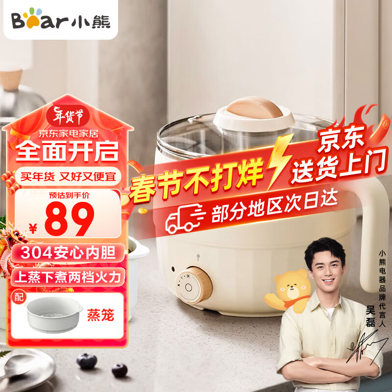 小熊(Bear)电煮锅 宿舍小锅 小电锅 电热锅蒸锅 学生寝室一体泡面火锅多功能多用途DRG-F12H2 配蒸笼价格:89.00元!