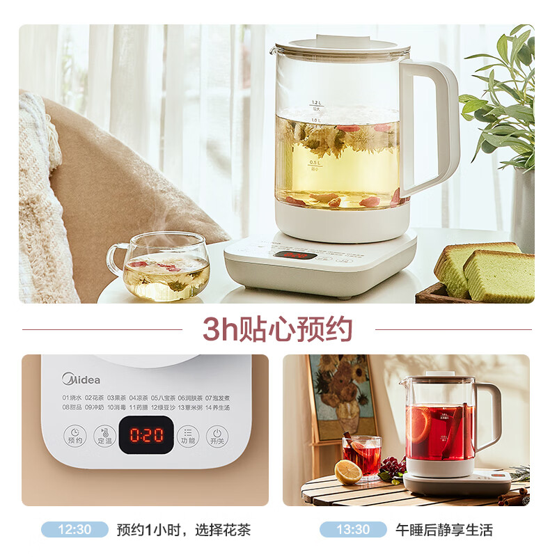 美的(Midea)养生壶 电热水壶 烧水壶1.2L办公室 煮茶器 多段控温 提壶记忆 智能触控面板 MK-YS15E107价格:89.00元!