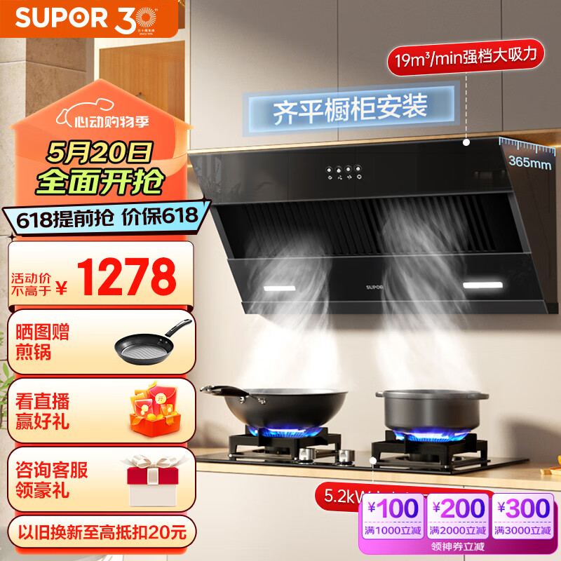苏泊尔(SUPOR)抽油烟机燃气灶套装 家用小尺寸大吸力 19立方侧吸式小户型烟灶套装DJ13S+DB28液化气价格:1278.00元!