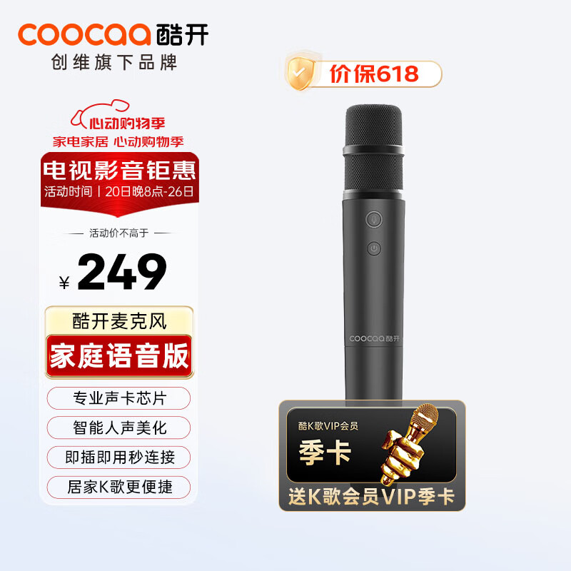 酷开 创维出品 酷K-QS创维电视专用麦克风家庭KTV 卡拉OK 降噪话筒唱歌会议 无线话筒K歌单支麦克风价格:249.00元!