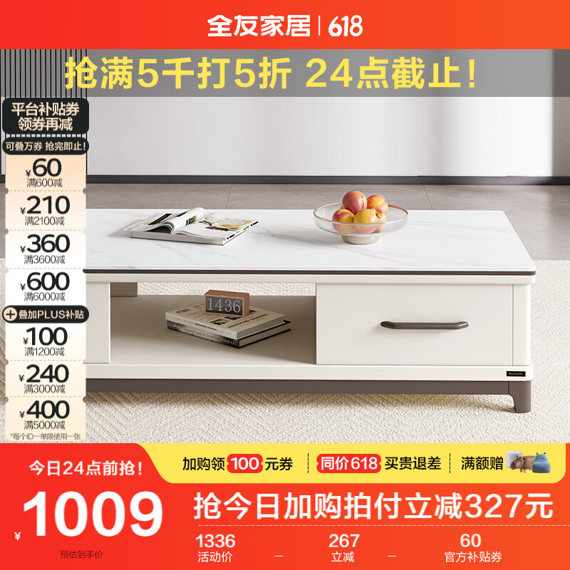 全友家居 茶几简约北欧小户型客厅边几岩板台面茶几储物柜子120709C价格:1336.25元!