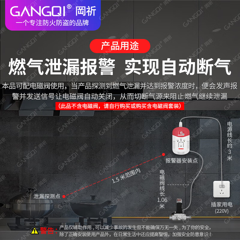岡祈(Gangqi)自动断气燃气报警器家用 含连接电磁阀功能 煤气天然气切断气阀泄漏探测器报警器价格:109.00元!