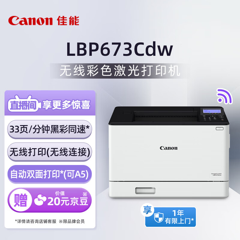 佳能(Canon)LBP673Cdw A4幅面无线彩色激光单功能打印机(打印/自动双面/大容量进纸 商用)价格:4699.00元!