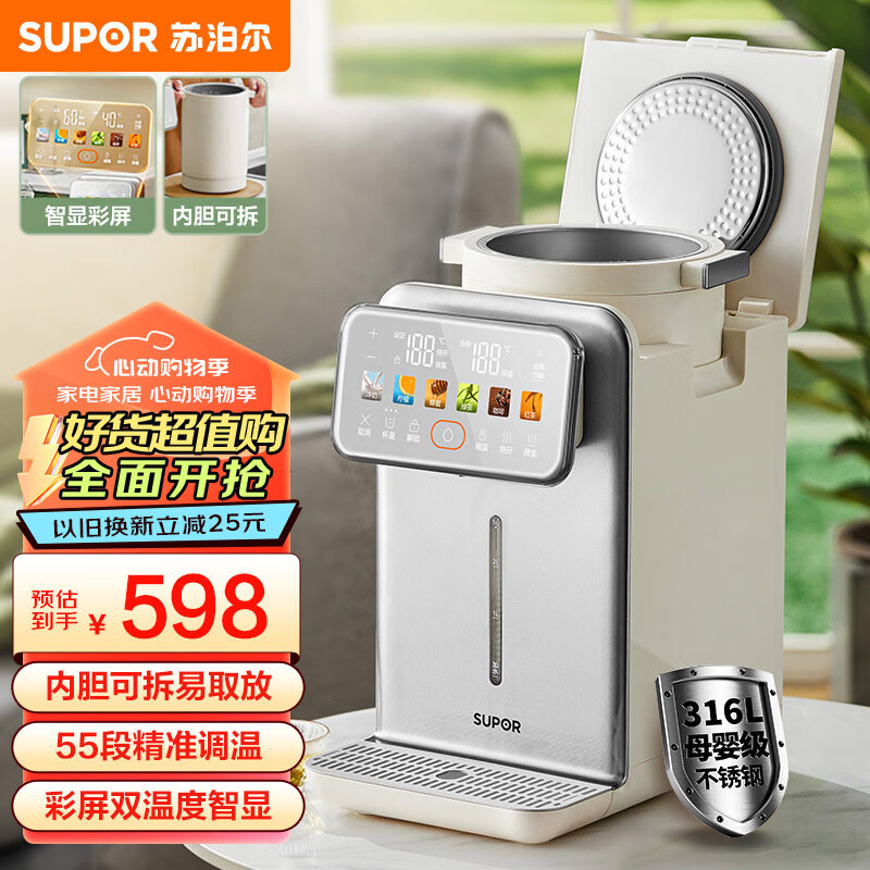 苏泊尔(SUPOR)电热水瓶 双层电热水壶烧水壶 5L大容量316L不锈钢电水瓶 多段保温恒温电水壶 SW-50T302价格:598.00元!