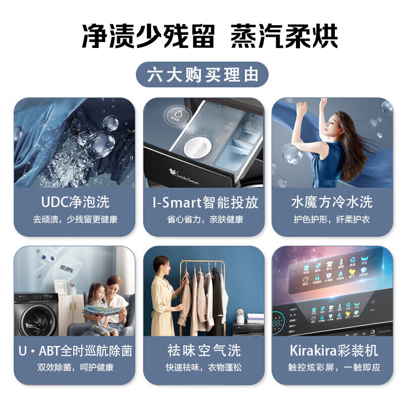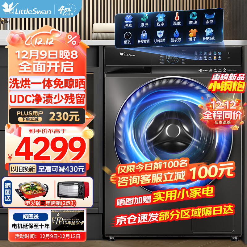 小天鹅(LittleSwan)滚筒洗衣机10公斤洗烘一体机水魔方小钢炮冷水洗UDC净泡洗智能投放彩屏触控洗衣机TD1OOVC189MUIT价格:4499.00元!