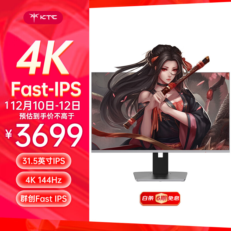 KTC 31.5英寸 4k144Hz FastIPS HDR400 10bit屏 120%sRGB广色域 升降旋转壁挂 无闪屏 电竞显示屏 U32P36价格:4999.00元!