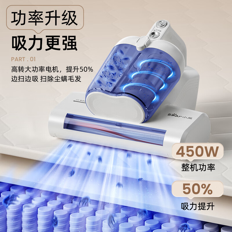 小熊除螨仪双杯尘螨分离家用床上紫外线杀菌超声波除螨机超大吸力螨虫机【送礼推荐】CMY-U05W6价格:369.00元!