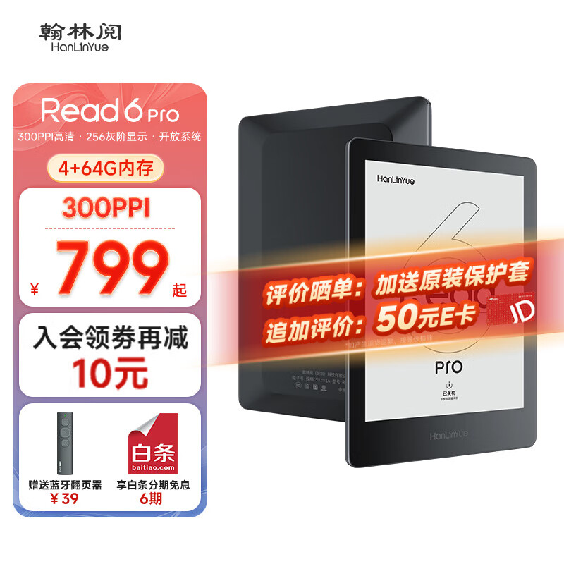 翰林阅Read6 Pro 4+64G深空黑 电子书阅读器墨水屏6英寸电子纸300PPI护眼电纸书阅览器官方标配价格:799.00元!