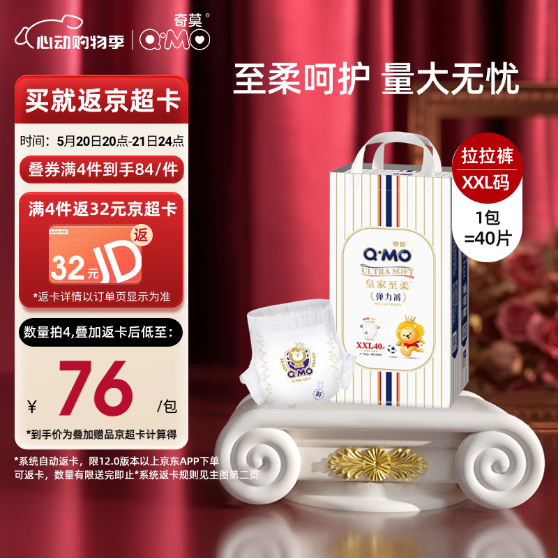 奇莫Q-MO皇家至柔拉拉裤XXL40片(15kg以上)加大码弹力裤尿不湿超薄价格:145.00元!