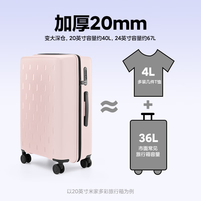 米家小米行李箱20英寸小型拉杆箱可登机箱万向轮旅行箱男女密码箱粉色价格:179.00元!