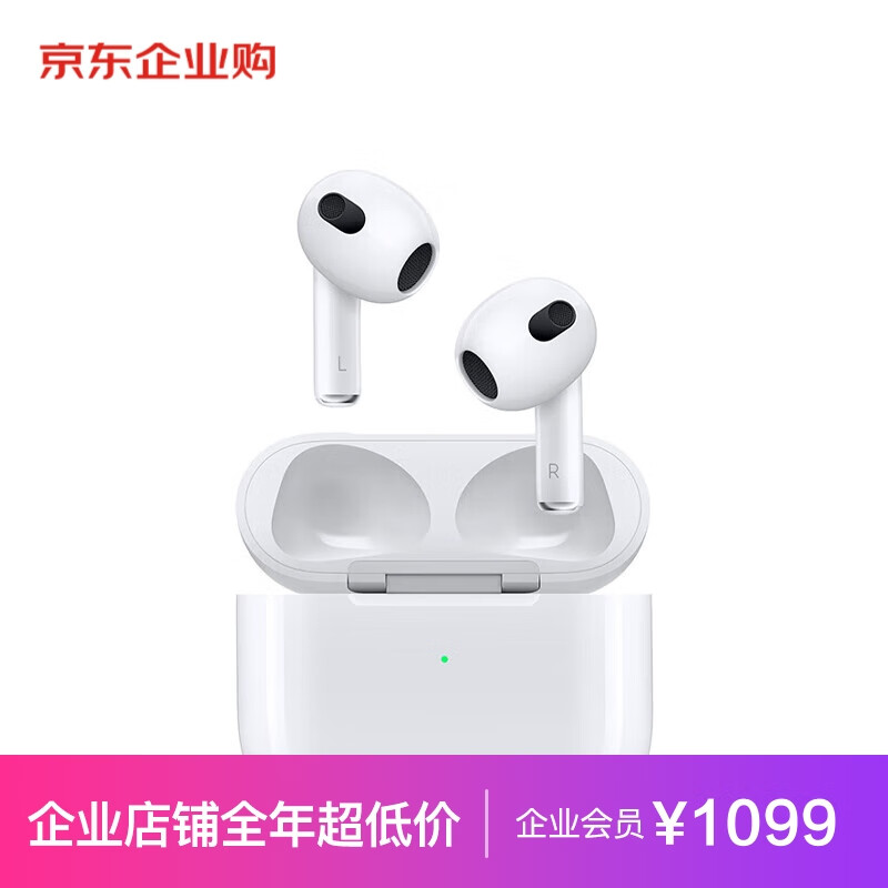 Apple AirPods (第三代) 配闪电充电盒 无线蓝牙耳机 适用iPhone/iPad/Watch MPNY3CH/A*企业专享价格:1169.00元!