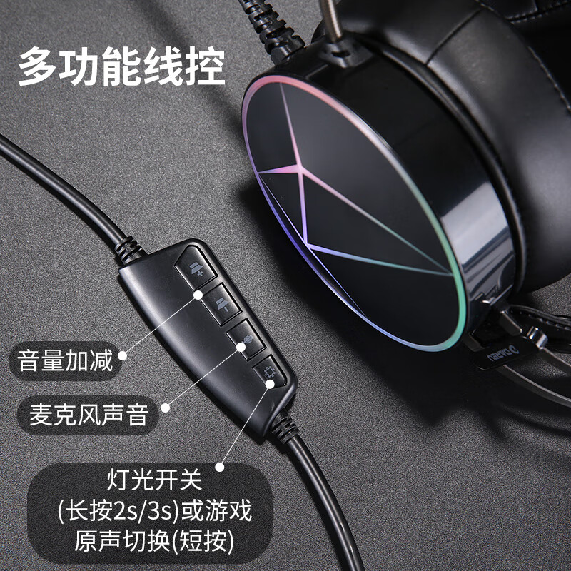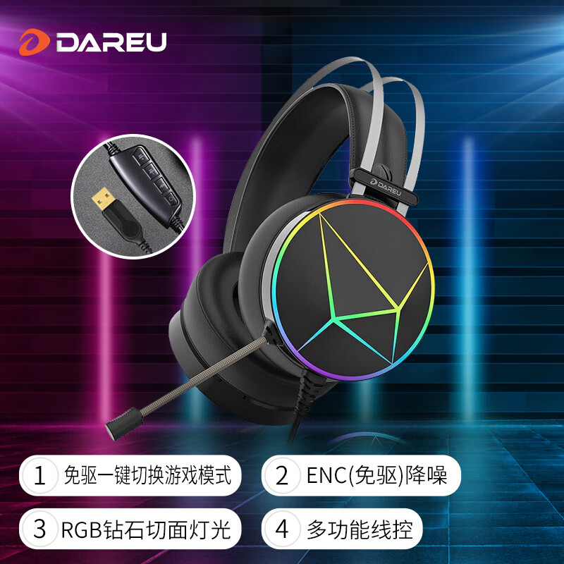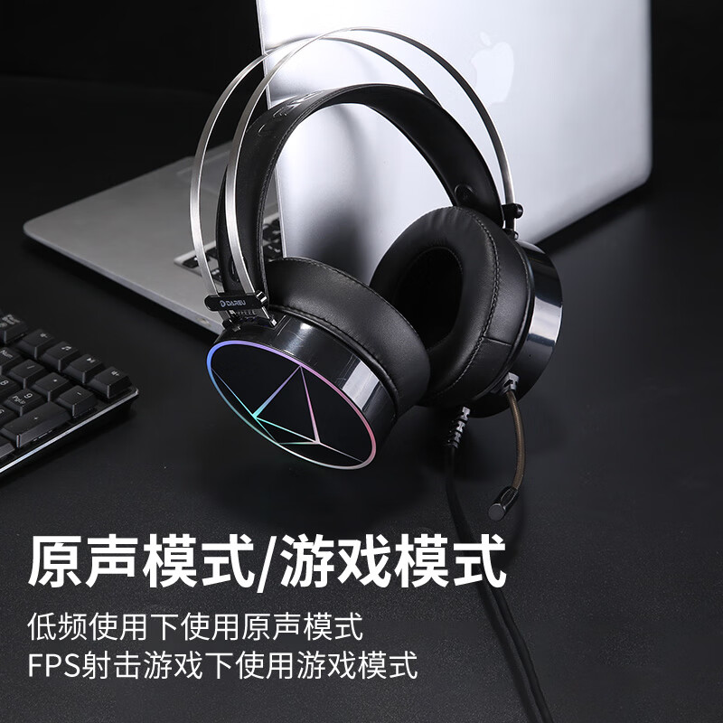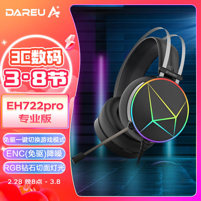 达尔优(dareu) EH722pro专业版 游戏耳机 耳机头戴式 降噪耳机 线控 游戏/原声模式 RGB 黑色价格:159.00元!