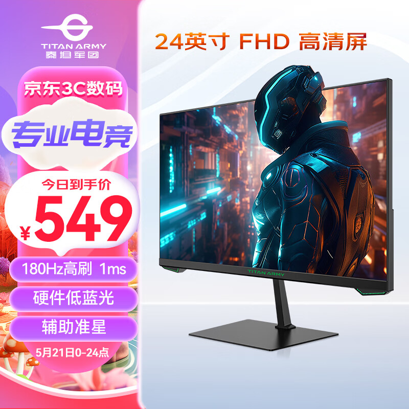泰坦军团24英寸180Hz电竞显示器1ms响应 全高清1080P 高色域直面屏 电脑屏幕 低蓝光游戏兼容144Hz P24H2GC价格:599.00元!