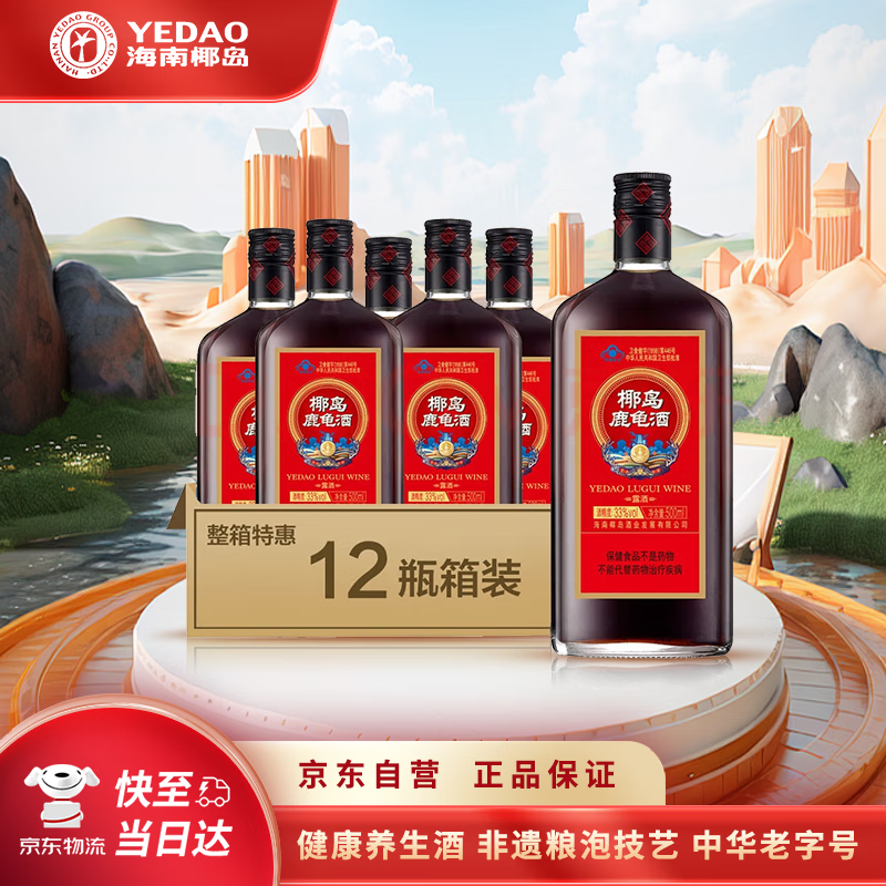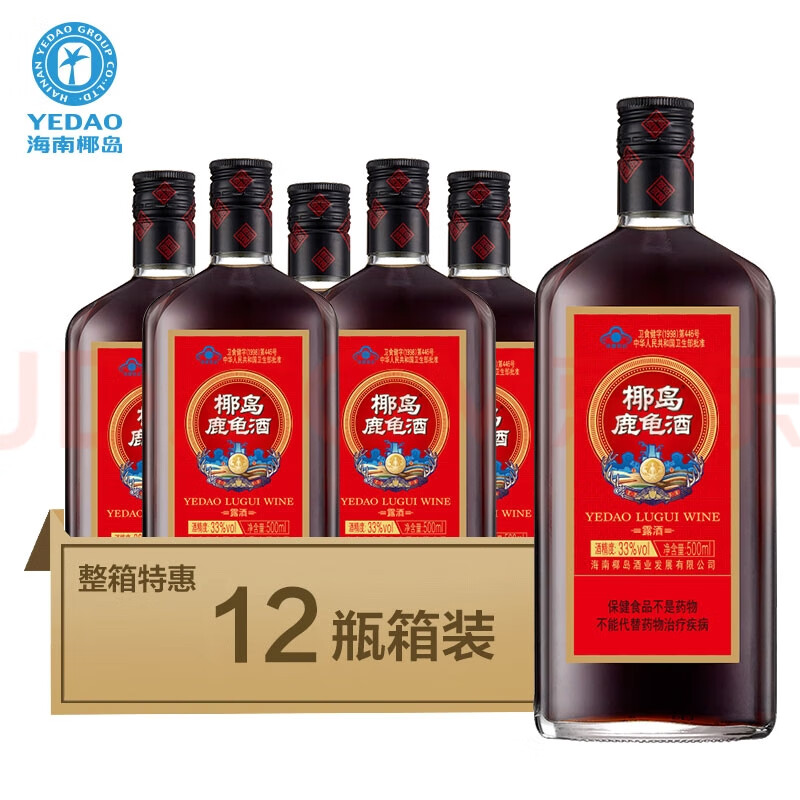 椰岛鹿龟酒 实惠装米酒酿泡养生保健补酒 33度 500ml*12瓶 整箱装价格:446.00元!