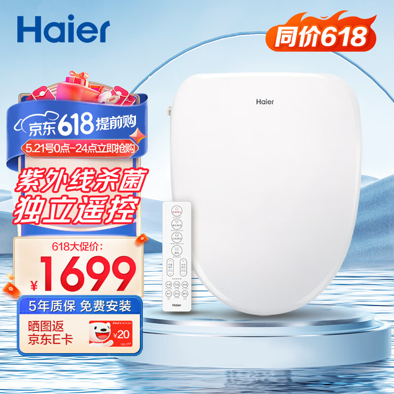 海尔(Haier)智能马桶盖 即热暖风遥控款 紫外线杀菌自动除臭抗菌座圈 H4-5018价格:2199.00元!