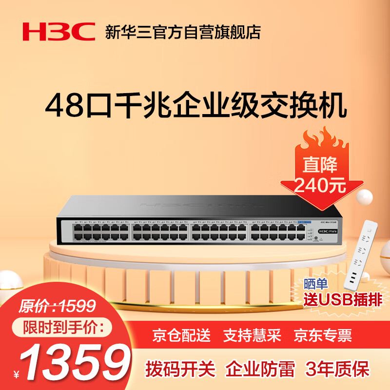 新华三(H3C)48口千兆交换机 企业级网络交换器 机架式网线分流器 S1248价格:1359.00元!