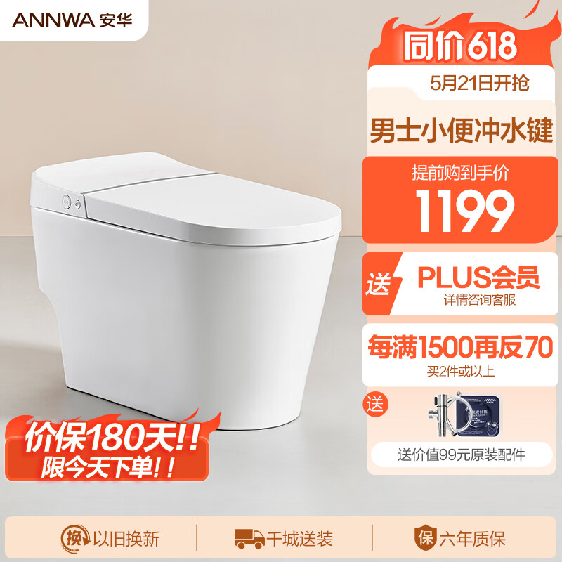 安华智能马桶一体机低水压可装半智能马桶喷射虹吸轻智能坐便器X607L价格:1509.00元!