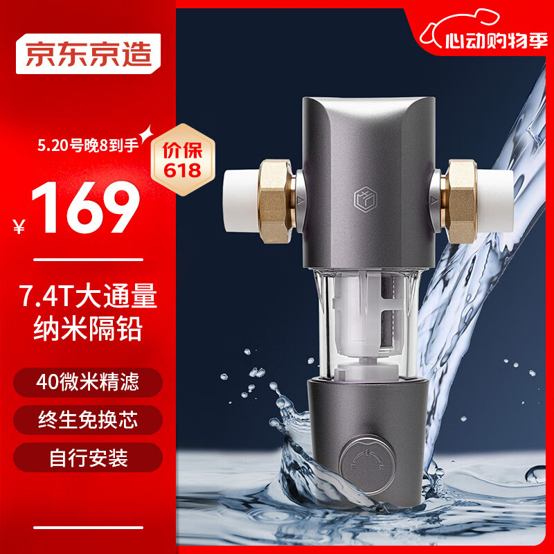 京东京造 前置过滤器 40微米反冲洗 7.4T/h流量升级 全屋净水器家用 免换滤芯 蓝晶纳米隔铅 自行安装价格:169.00元!