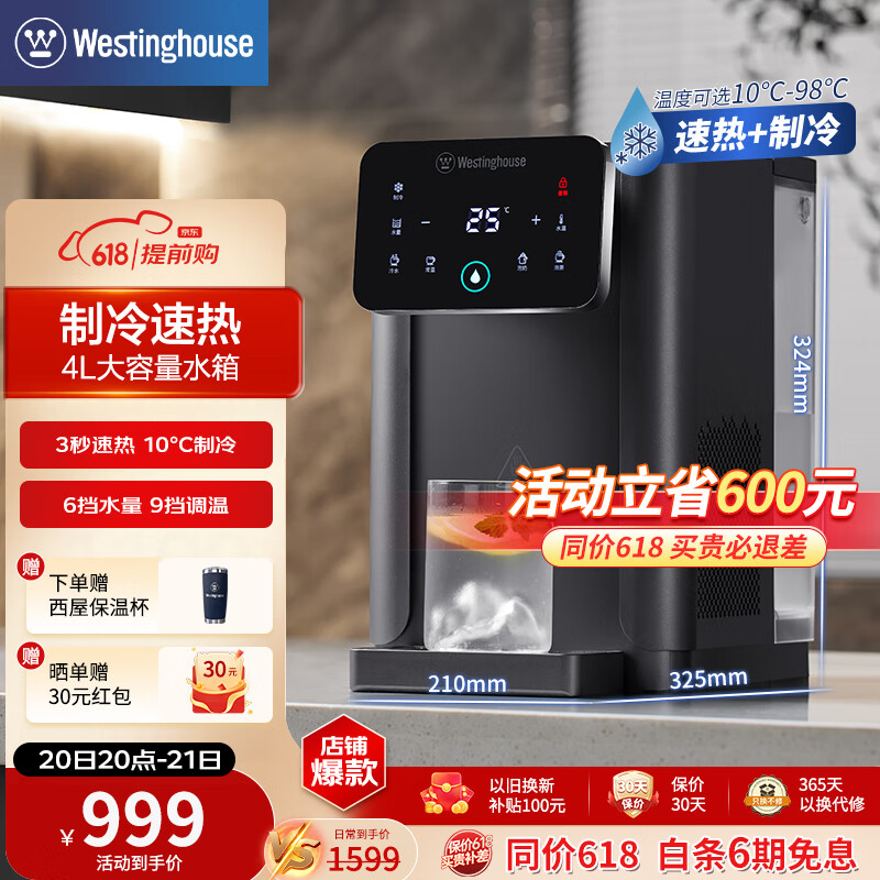 西屋(Westinghouse)台式即热式饮水机小型饮水机家用 办公台式客厅台面即热饮水机 免安装一键速热恒温直饮机 WFH40-W4S 即热制冷型价格:1149.00元!