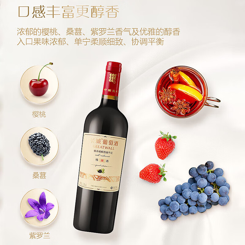 长城 特选15 橡木桶解百纳干红葡萄酒 750ml*6瓶 整箱装价格:449.00元!