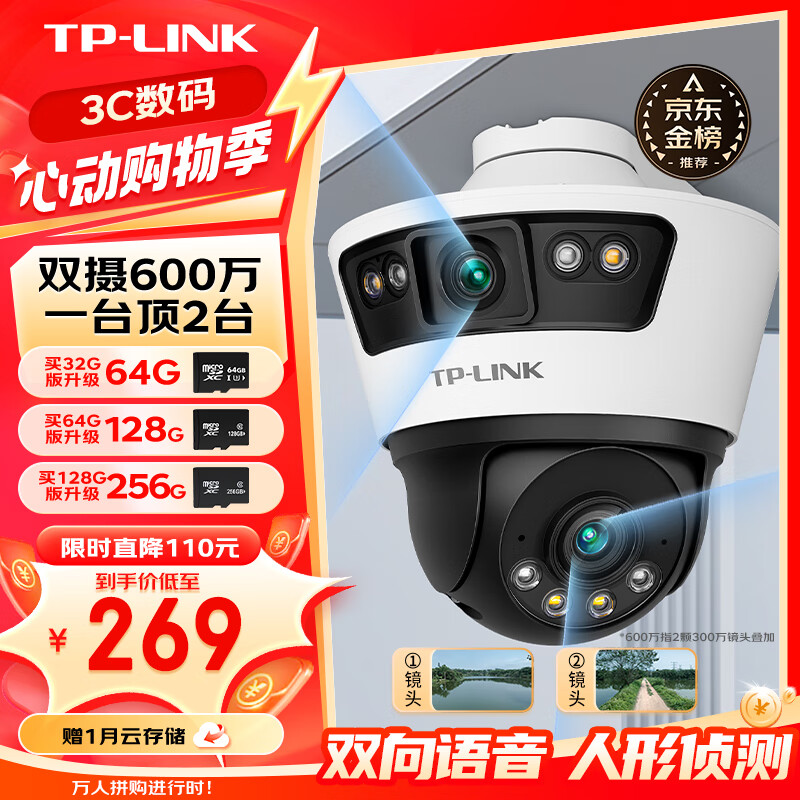 TP-link 双摄600万枪球联动全彩超清摄像头家用监控器360无线家庭室外户外tplink网络远程高清IPC669-A价格:299.00元!